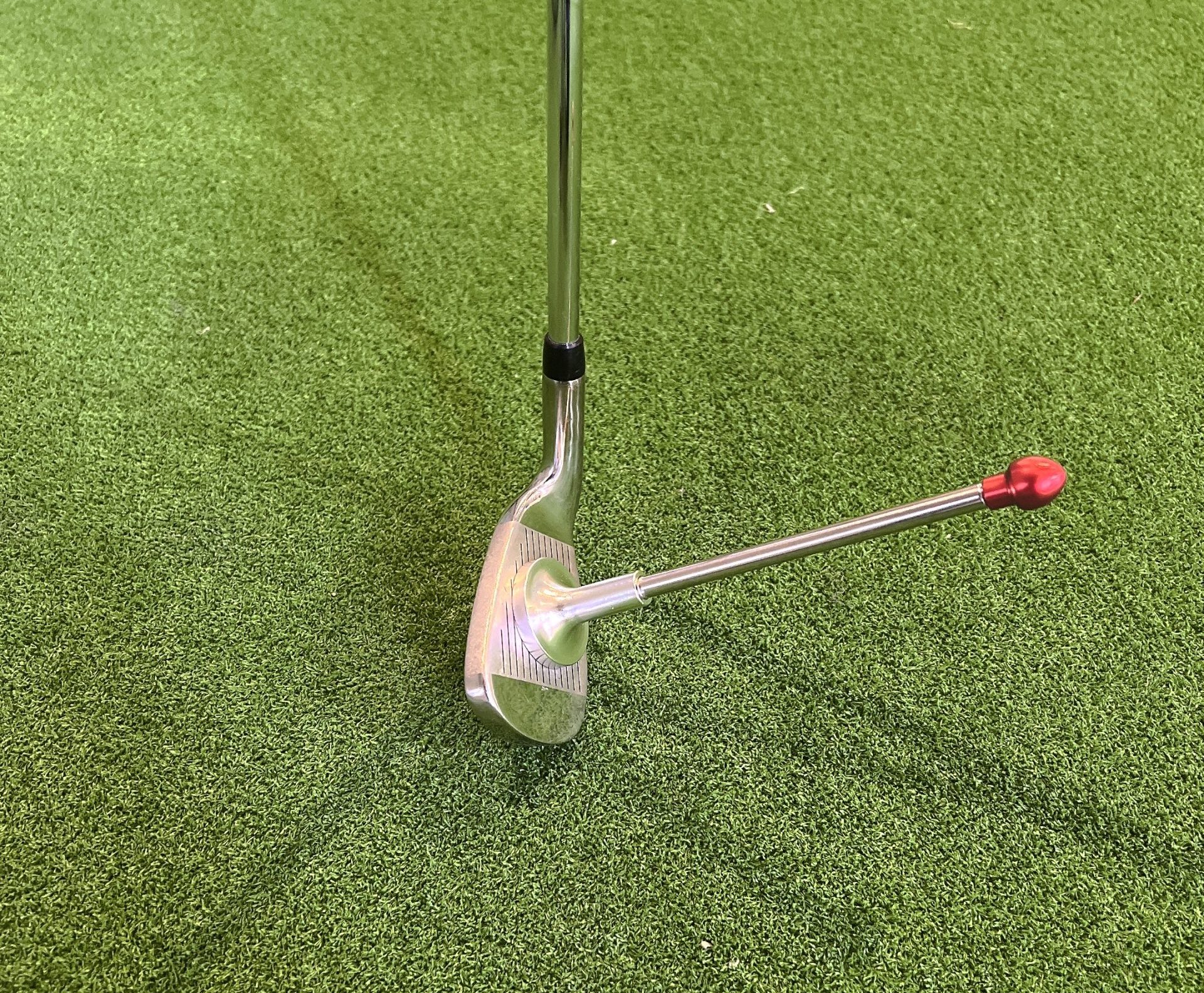 アライメントロッドは、アイアンやウェッジのフェースに磁石で取り付けるだけで、フェースの向きやスイング軌道を“見える化”できるトレーニング器具です。